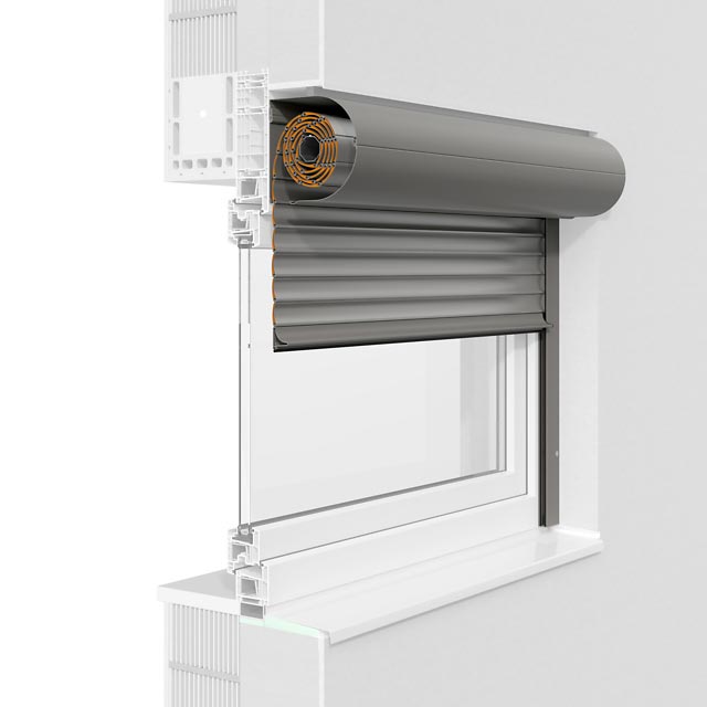 Kennzeichen ist die fünfeckige Kastenform und individuelle Zusatzausstattungen wie etwa Insektenschutzgitter ergänzen dieses Rollladensystem.